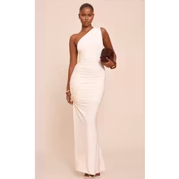Almond Double Layer Slinky One Shoulder Maxi Dress - 16