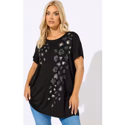 Yours Plus Size Black Leopard Embellished Tshirt Size 18