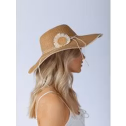 SVNX Women's Sunflower Straw Sun Hat in Beige - One Size