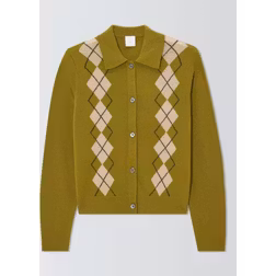 John Lewis Merino Wool Argyle Knit Collar Cardigan - Olive