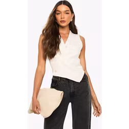 boohoo Women's Asymmetric Adjustable Back Waistcoat in White | Size: 16