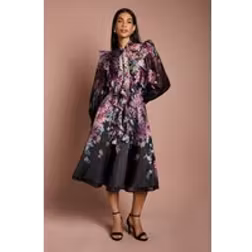 Coast Long Sleeve Frill Trim Organza Blouse With Tie Neck - Multi