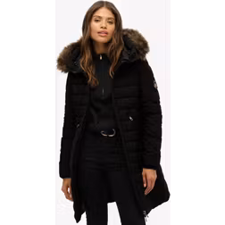 Superdry Fuji Faux Fur Hood Mid Length Coat - Black
