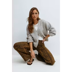 Gina Tricot V Neck Knitted Wool Alpaca Cardigan - Light Grey Melange