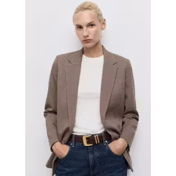 Mango Double-Breasted Micro Houndstooth Jacket - Burgundy