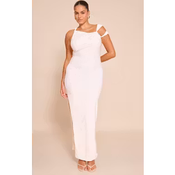 PrettyLittleThing Double Layer Slinky Ruched Shoulder Maxi Dress - White