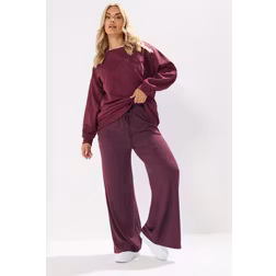 Yours Ribbed Wide Leg Trousers Plus Size - Burgundy