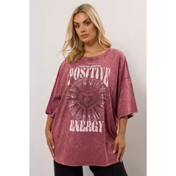 Yours Curve Pink Acid Wash 'Positive Energy' Oversized Tshirt, Women's Curve & Plus Size, Yours - 20
