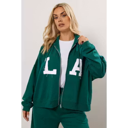 Yours La Slogan Zip Hoodie Women - Green