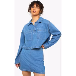 boohoo Women's A-Line Denim Skirt in Mid Blue | Size: 14