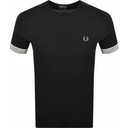 Fred Perry Striped Cuff T Shirt Black