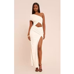 PrettyLittleThing Cream Slinky Cut Out Maxi Dress - White
