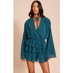 Tall Teal Chiffon V Neck Frill Tiered Playsuit - 10