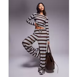Kaiia exclusive super soft jersey drawstring trousers co-ord in brown and blue stripe-Multi
