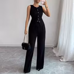 SHEIN 2pcs Women Commuter Minimalist Front Button Vest And Pants Set