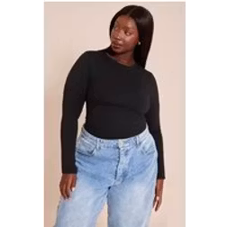 Plus Black Cotton Crew Neck Long Sleeve Bodysuit - 18