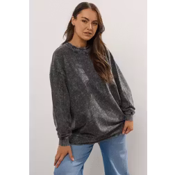 Yours Women's 2-In-1 Acid Wash Sweatshirt in Dark Grey | Size: 20