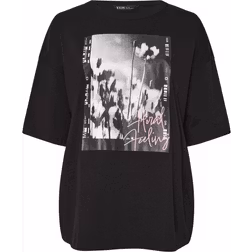 Yours Curve Black 'Floral Feeling' Oversized Tshirt, Women's Curve & Plus Size, Yours - 18
