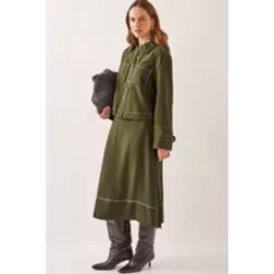 Monsoon Katya Tie Waist Midi Skirt - Green