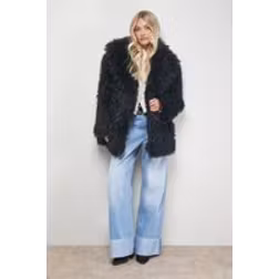 Oasis Women's Mongolian Faux Fur Short Coat in Black | Size: Large