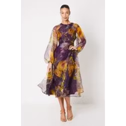 Coast Organza Wrap Waist Puff Sleeve Midi Dress - Purple