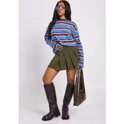 Womens Corduroy Pleated Mini Skirt - Green - 14, Green