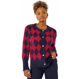 Roman Check Buttoned Cardigan - Red