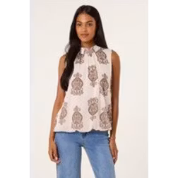 Blue Vanilla Women's Light Brown Printed Sleeveless High Neck Blouse | Size: Medium/Large - M/L