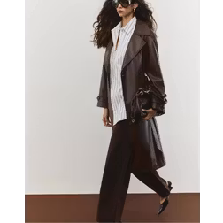 Stradivarius Long Faux Leather Trench Coat - Brown