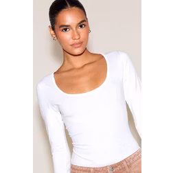 PrettyLittleThing Cotton Scoop Neck Long Sleeve Bodysuit - White