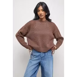 Warehouse Women's Open Stich Tie Side Jumper in Chocolate | Size: Medium