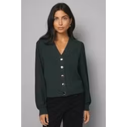 Wallis Chiffon Sleeve Button Front Cardigan - Green