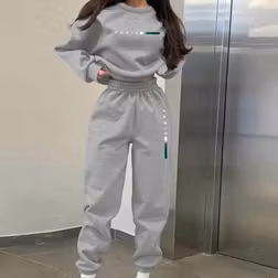 VaVaBold Paris Minimalist Digital Print Front Casual Comfortable Versatile Streetwear Women Fleece Sweatshirt & Pants Set Fall Cloth For Women