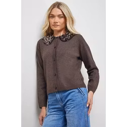 Oasis Sequin Collar Cardigan Jumpers - Brown