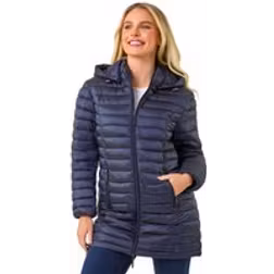 Metallic Finish Quilted Puffer Coat - Navy - 14