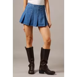 Warehouse Denim Pleated Mini Casual Skirt - Mid Blue