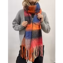 SVNX Women's Soft Chunky Checked Scarf with Tassels in Blue Berry - Multicolor - One Size