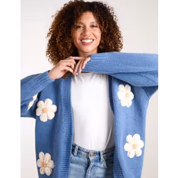 Blue Vanilla Women's Daisy Large Flower Cardigan in Blue | Size: S/M