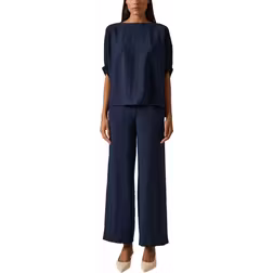 James Lakeland Round Neck Batwing Top Gathered Sleeve Blouse - Navy