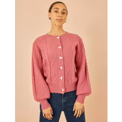 Yumi Pink Relaxed Fit Cable Cardigan - Size S UK