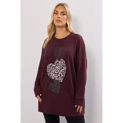 Yours Curve Purple Embellishment Heart Jumper, Women's Curve & Plus Size, Yours - 22-24