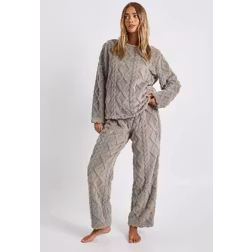 Womens Cable Knit Fleece Jumper & Trousers Lounge Set - Grey - 6, Grey
