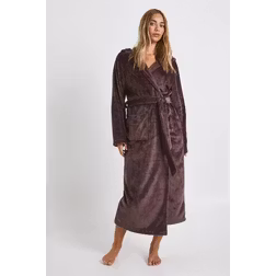boohoo Fleece Hooded Long Dressing Gown - Brown