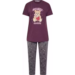 Yours Plus Size Burgundy Red 'Bearly Awake' Pyjama Set Size 14-16