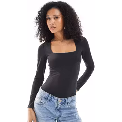 New Look Long Sleeve Square Neck Bodysuit - Black
