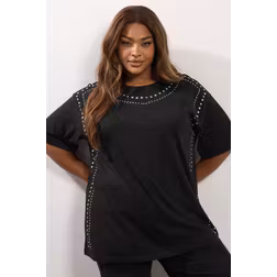 Yours Curve Black Studded Oversized Tshirt, Women's Curve & Plus Size, Yours - 34-36