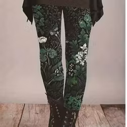 SHEIN Women's Floral Print Leggings Sexy Skinny Fit Knit Fabric, All-Season Geometric Pattern High Waist Long Leggings