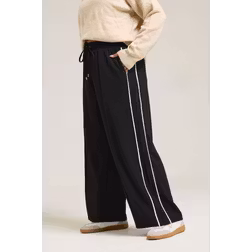 Yours Curve Black Side Stripe Wide Leg Trousers - Black