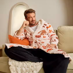 OHS Flannel Fleece Autumn Print Dressing Gown, Adult - Beige - Natural