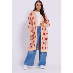 Yours Plus Size Pink Argyle Heart Midi Cardigan Size 26-28